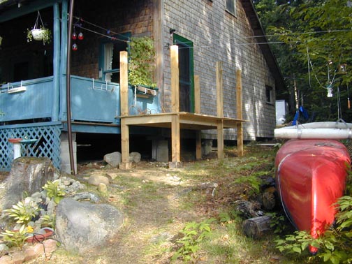 Using rough 4" X 4"s and 1" X 12"s we began with a 5' X 11' deck